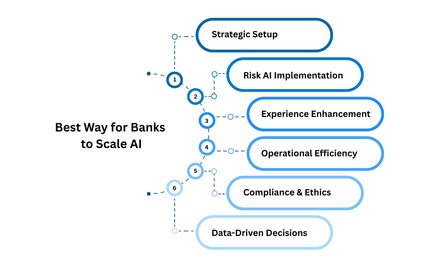 Launching AI in banking isn’t about quick fixes or isolated experiments. Banks that see real results approach AI with a clear plan, making sure every step supports their bigger goals. A strategic framework helps banks move past scattered pilots and build AI into the core of their business.