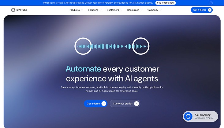 Cresta is an enterprise AI platform for contact centers that combines AI agents, agent assist, and conversation intelligence into a single system. It focuses on real-time guidance, operational oversight, and post-call intelligence across human and AI-led interactions.