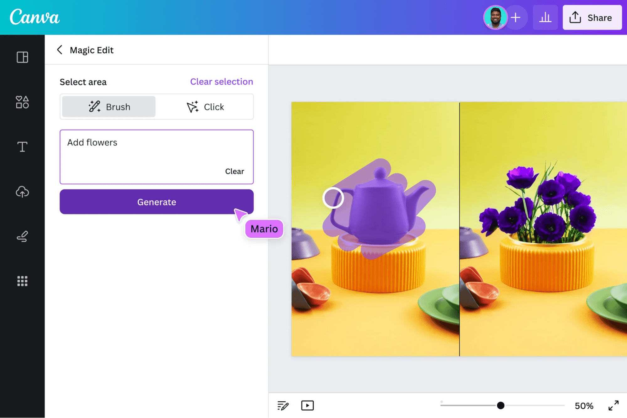 Automated Image and Video Editing: Magic Media enables users to transform text prompts into images, icons, or videos. This tool allows for quick visual content creation, which can be fine-tuned using Canva's editing tools and filters. Marketers can efficiently produce engaging visuals without the need for extensive design expertise.