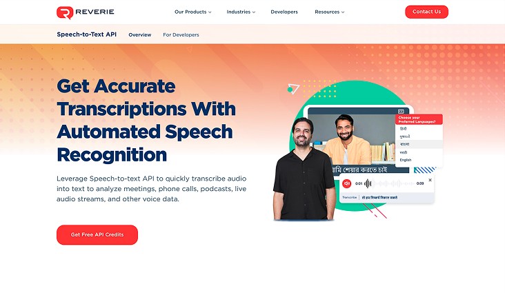 Reverie Speech-to-Text API provides real-time and batch transcription with strong support for multilingual and regional language processing, ideal for businesses handling diverse voice inputs.