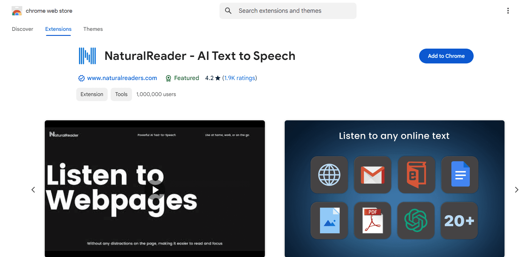 Natural Reader is a powerful text-to-speech Chrome extension designed for accessibility and productivity.