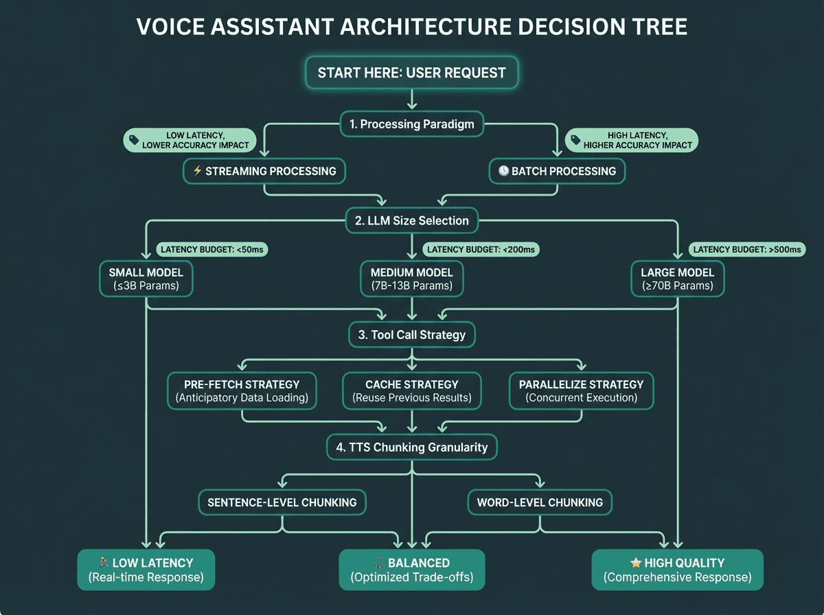 Tool calls add a second round-trip inside the LLM stage. Minimizing unnecessary tool invocations is critical for latency.
