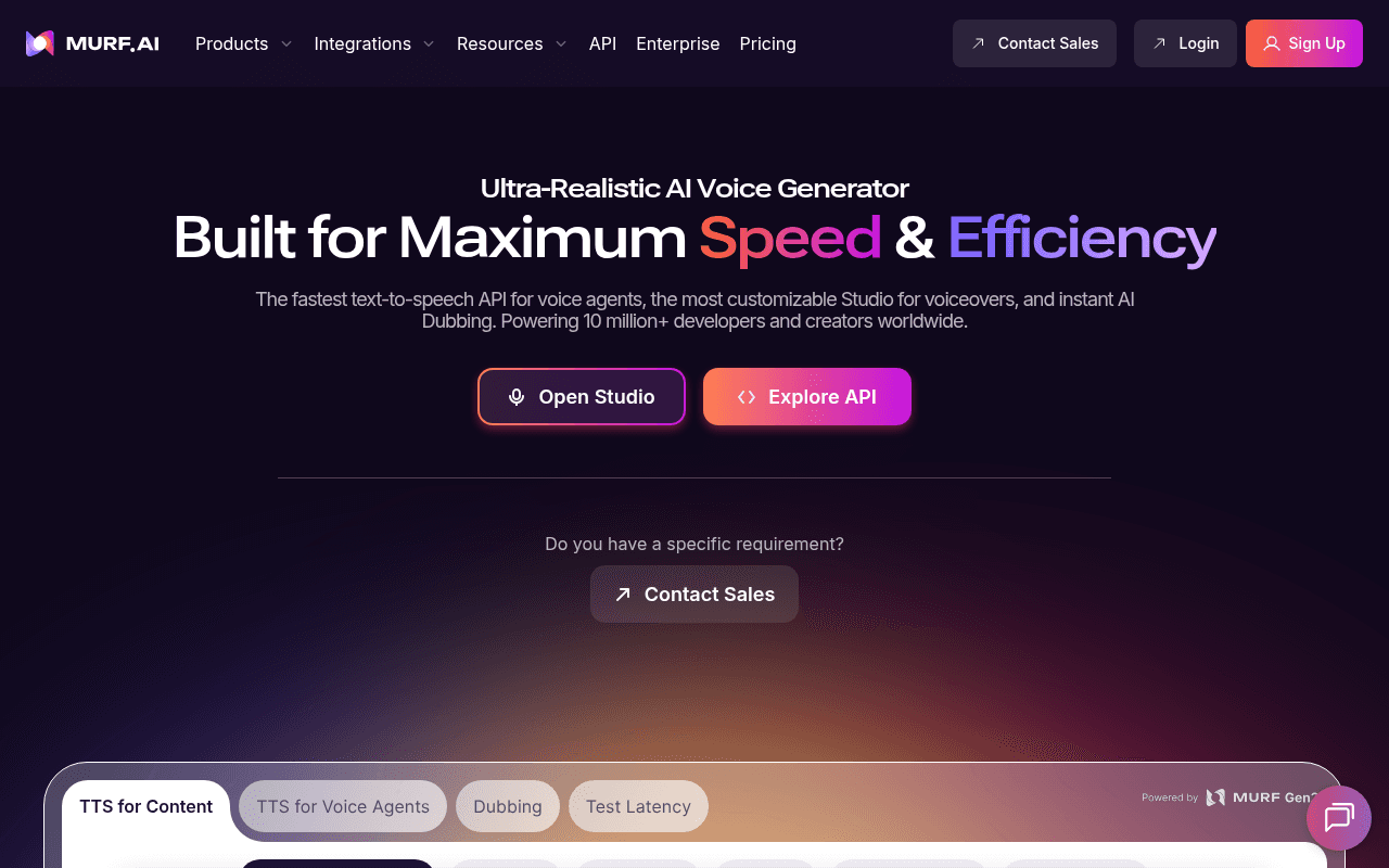 Cartesia is worth including because it competes directly on latency, which puts it in the same conversation as Smallest.ai for real-time applications. Its Sonic model is designed for streaming synthesis with low time-to-first-audio, and the API is well-documented with WebSocket support. Voice quality is good, though the voice library is smaller than Fish Audio's or Murf.ai's.