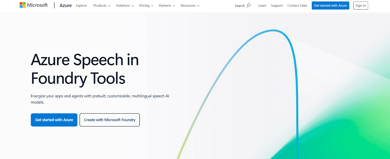 Microsoft bundles TTS into its Azure Cognitive Services for Speech, a unified API that also handles speech-to-text and translation. Azure’s biggest advantage is its perpetual free tier, which doesn't expire after a year. This makes it a sustainable choice for long-term projects with modest needs.