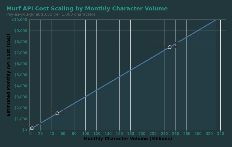 To put that in practical terms: a 500-word script averages roughly 3,000 characters, costing $0.09 per generation. For low-volume applications, that is affordable. For high-throughput systems generating thousands of audio files daily, the costs compound quickly and the per-character model becomes a significant budget line item.