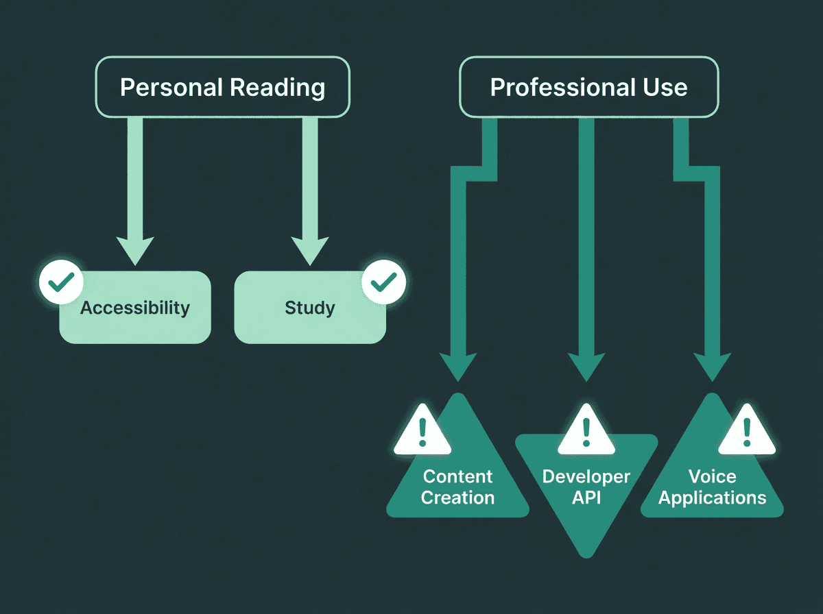 NaturalReader is well-suited for personal use but faces real constraints in professional and developer contexts.