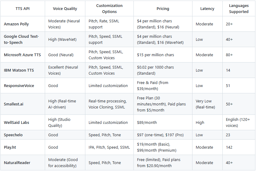 With so many options available, it can be tricky to choose the right Text-to-Speech API for your needs. Let’s explore some of the top providers offering high-quality TTS solutions.