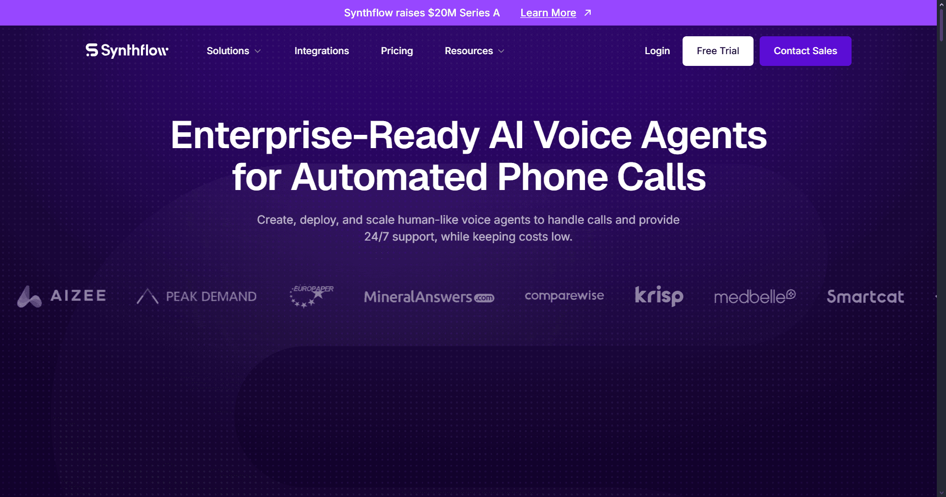 Synthflow AI | $29/mo– 50 min & 5 conc. calls | pro– $375/mo Growth- $750/mo | Agency – $1,250/mo Enterprise- Custom |