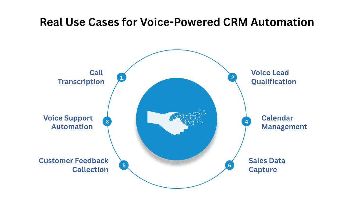 Voice to CRM delivers measurable gains in accuracy, productivity, and customer engagement. These benefits translate directly into practical applications across sales, support, and marketing operations.