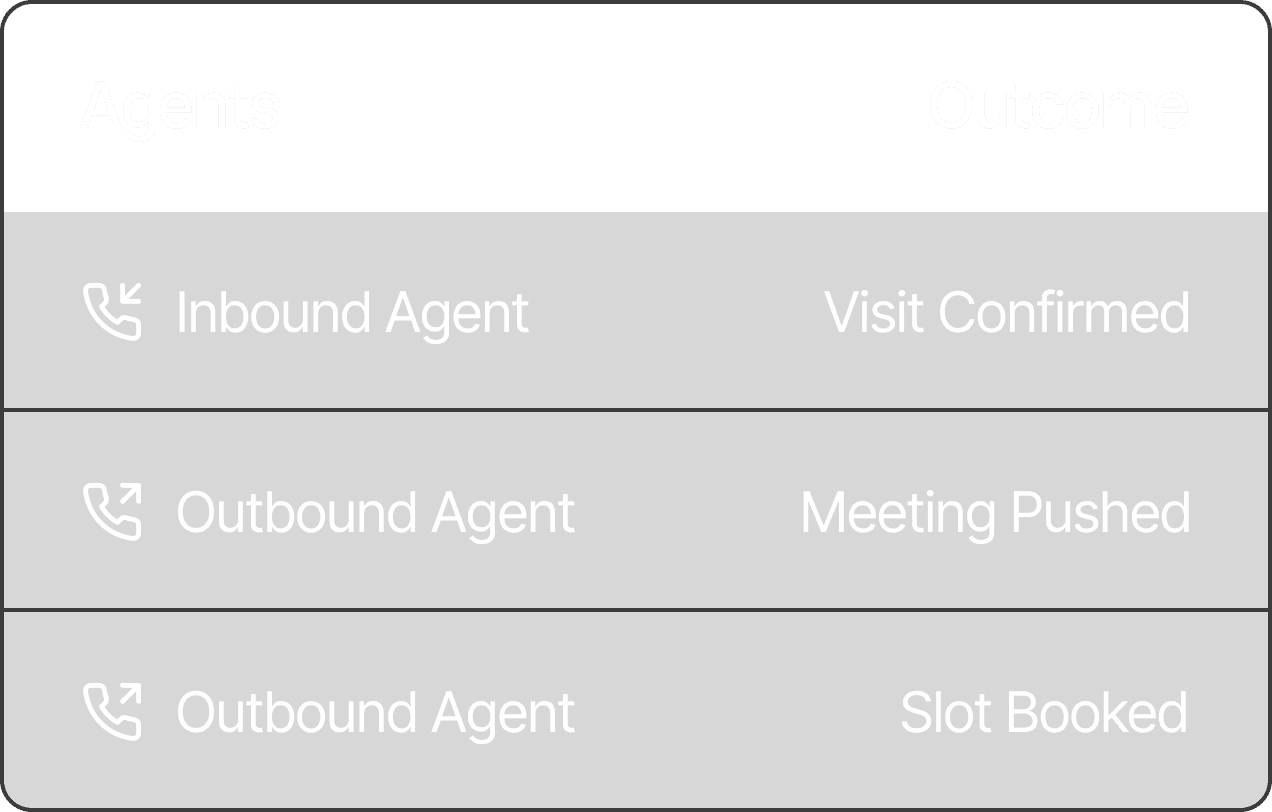 AI voice agents that engage buyers, qualify leads, and schedule site visits- so your sales team can focus on closing deals.