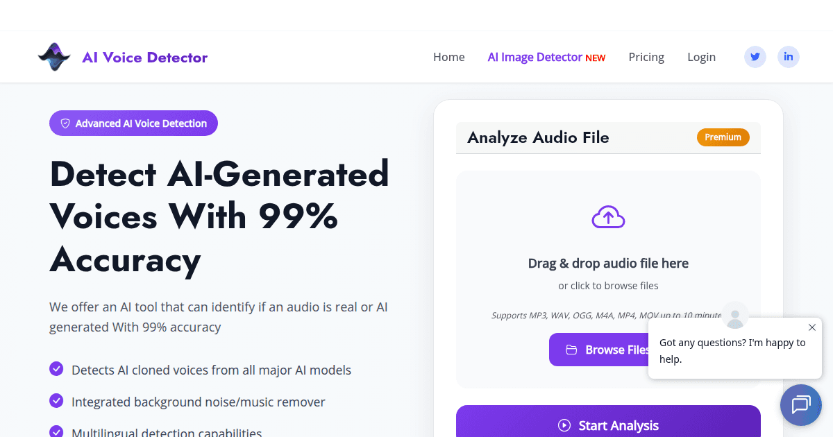 AI Voice Detector is a specialized Voice AI platform designed to identify whether an audio sample is generated by artificial intelligence or a real human voice. Built for developers, cybersecurity teams, and businesses, it leverages advanced deep learning algorithms to analyze speech patterns, vocal biomarkers, and spectral features, providing up to 99% accuracy in distinguishing AI-generated voices from authentic human speech. The platform is ideal for organizations and individuals seeking robust protection against AI voice fraud, deepfake scams, and synthetic audio manipulation, supporting a wide range of use cases from financial security to media verification.