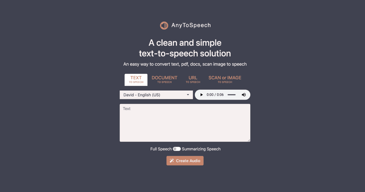 AnyToSpeech operates a robust AI voice pipeline: it ingests content via text, document, image (OCR), or URL, processes it through a neural speech-to-text (STT) and large language model (LLM) layer for normalization and summarization, and outputs high-quality text-to-speech (TTS) audio. This STT -> LLM -> TTS pipeline enables rapid, accurate, and expressive voice generation across formats.