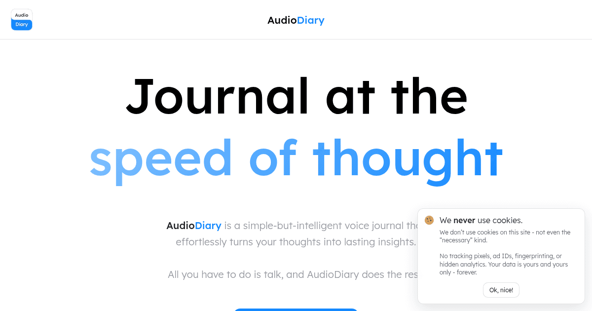 AudioDiary AI operates by capturing voice input, transcribing it using speech-to-text (STT) technology, and then analyzing the content with AI models (notably OpenAI) to generate summaries, insights, and suggested goals. The technical workflow ensures privacy and security at every step, with encrypted storage and GDPR-compliant processing.