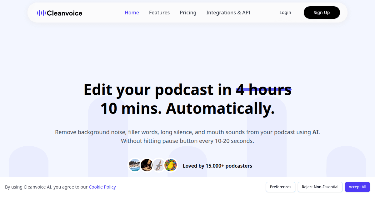 Cleanvoice AI is a specialized Voice AI platform designed to automatically remove filler words, stutters, mouth sounds, and background noise from audio recordings. Targeted at developers, podcasters, and businesses building voice-driven applications, Cleanvoice AI leverages advanced speech-to-text (STT), large language models (LLMs), and text-to-speech (TTS) technologies to deliver clean, production-ready audio. The platform is ideal for those seeking to enhance the clarity and professionalism of voice content without manual editing, making it a valuable tool for podcast production, transcription services, and conversational AI solutions.